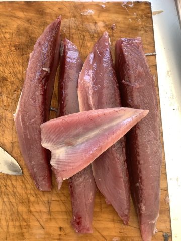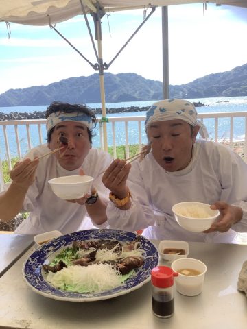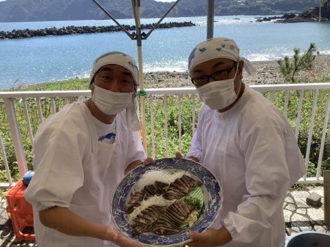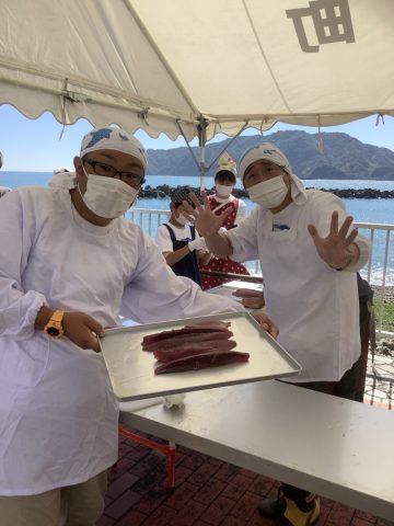 そして「黒潮冒険団」のメンバーとツーライスも鰹をさばきました