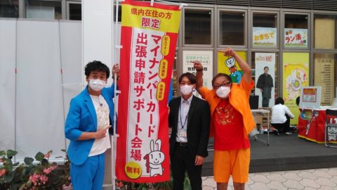 HOME > 新着情報 > ブログ > 『マイナンバーカード』ロケ 『マイナンバーカード』ロケ 帯屋町・「金高堂」前でマイナンバー出張申請サポート会場があるということでツーライスがPRの収録にやってきました! 職員さんにも参加してもらいマイナンバーについて詳しいことをお聞きしました! マイナンバーの申請はお早めにろんな特典がついてきます。
