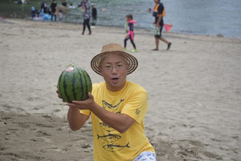 ビーチフラッグ・スイカ割り・宝探しもたくさんのちびっこが参