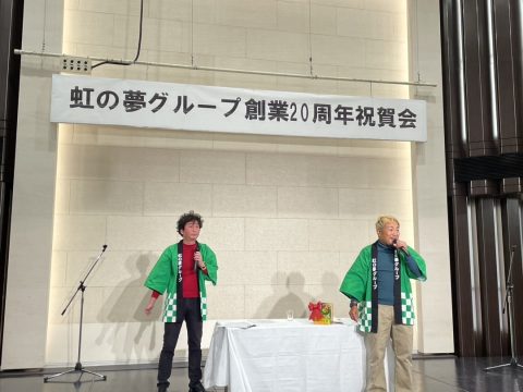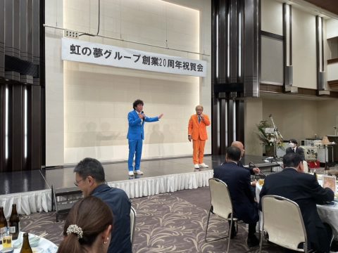 HOME > 新着情報 > ブログ > 『虹の夢グループ創業20周年祝賀会』 『虹の夢グループ創業20周年祝賀会』 城西館で行われた 『虹の夢グループ創業20周年祝賀会』の司会をツーライスがやらさせていただきました 鏡開き 大抽選会 『虹の夢グループ』さんおめでとうございます‼︎