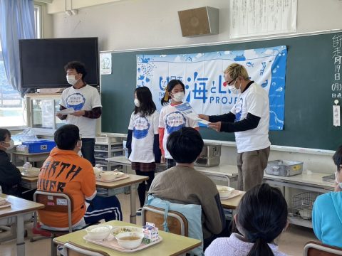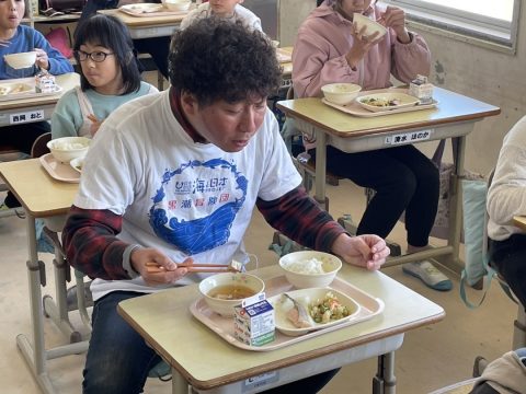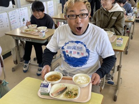 生徒と一緒に『土佐節』を使った給食をみんなで食べました