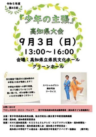 「少年の主張」高知大会・司会はツーライス