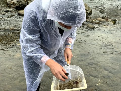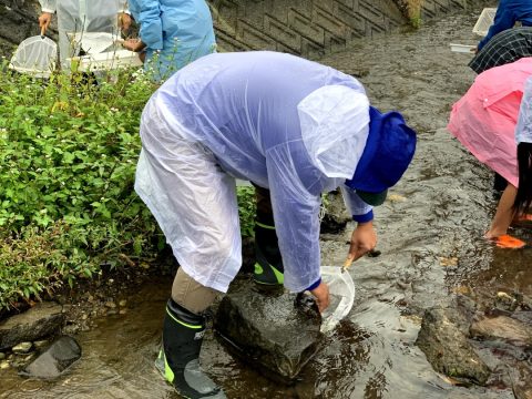 そのあとは川で生物観察