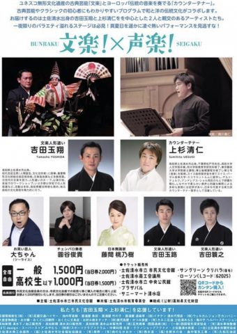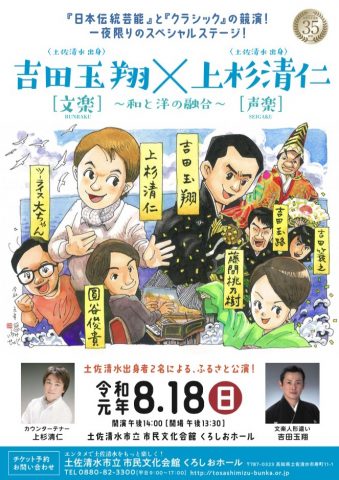 HOME > 新着情報 > イベント情報 > 文楽×声楽 文楽×声楽 大ちゃんの故郷・土佐清水の後輩 文楽『吉田玉翔』&声楽『上杉清仁』 大ちゃんが司会で盛り上げます(^∇^) 8月18日は「土佐清水市立市民文化会館・くろしおホール」で待ってます!