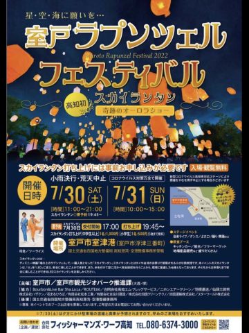 HOME > 新着情報 > イベント情報 > 「室戸ラプンツェルフェスティバル」 「室戸ラプンツェルフェスティバル」 『室戸ラプンツェルフェスティバル』 7月30日31日は室戸でお待ちしています(#^.^#)