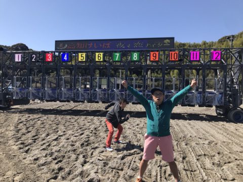 今日は全員揃って高知競馬場で「お笑い&ものまねステージ」