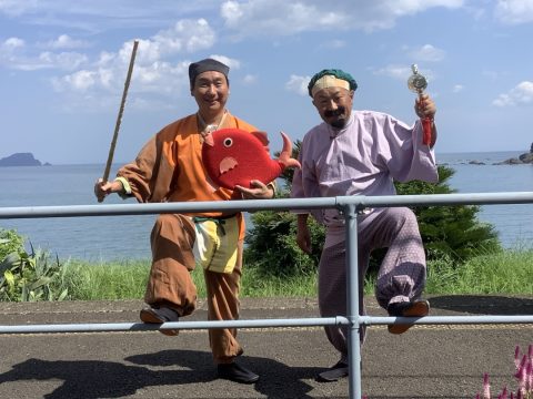 ツーライスが大黒様と恵比寿様に扮して高知県の抱える問題にスポットをあてる番組
