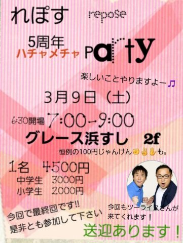 3月9日【れぽす】5周年ハチャメチャparty!