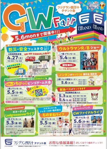 HOME > 新着情報 > イベント情報 > フジグラン四万十 フジグラン四万十 5月5日は「フジグラン四万十」で 東京からジャイアント小馬場こと「スギタヒロシ」と スリーディーエンタテインメントから筒井啓文&ジャガー川村の3組で お笑いモノマネショーだ!!! フジグラン四万十でものまねライブを見に来てください!