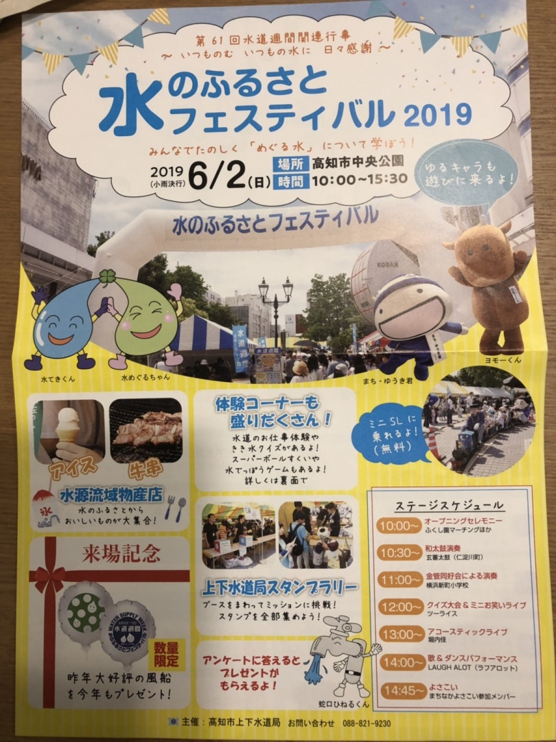 HOME > 新着情報 > イベント情報 > 水のフェスティバル 水のフェスティバル 6月2日 高知中央公園「水のふるさとフェスティバル2019」に ツーライス・筒井啓文・ジャガー川村が参加します!!! 12時からの「クイズ大会&ミニお笑いライブ」をやります! 時間のある方はぜひ6月2日日曜日・中央公園に来てね!!!!