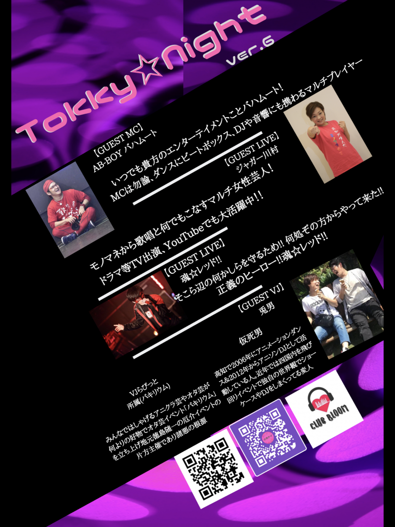 HOME > 新着情報 > イベント情報 > Tokky☆night Tokky☆night 6月15日 ジャガー川村出演『Tokky☆night』 ジャガー川村が暴れまくります!!! アニソンメドレーをやりますので ぜひぜひ遊びに来てください(^∇^)