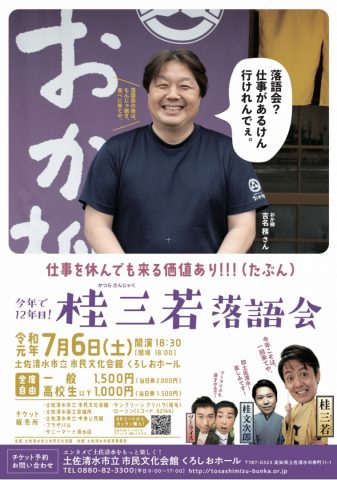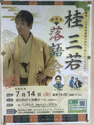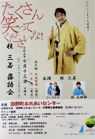 HOME > 新着情報 > イベント情報 > 7月は落語会 7月は落語会 まずは 7月6日は大ちゃんのふるさと「土佐清水市立市民文化会館くろしおホール」 7月13日は「田野町ふれあいセンター」 7月14日は「窪川四万十会館ホール」 生で桂三若さんの落語とツーライスのネタを見に来てね(^◇^)