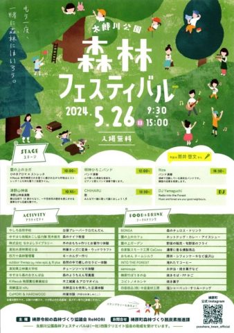 HOME > 新着情報 > イベント情報 > 5月26日太郎川公園『森林フェスティバル』 5月26日太郎川公園『森林フェスティバル』 5月26日 太郎川公園にて『森林フェスティバル』 MCは筒井啓文 イベント盛りだくさん‼︎ お待ちしてます